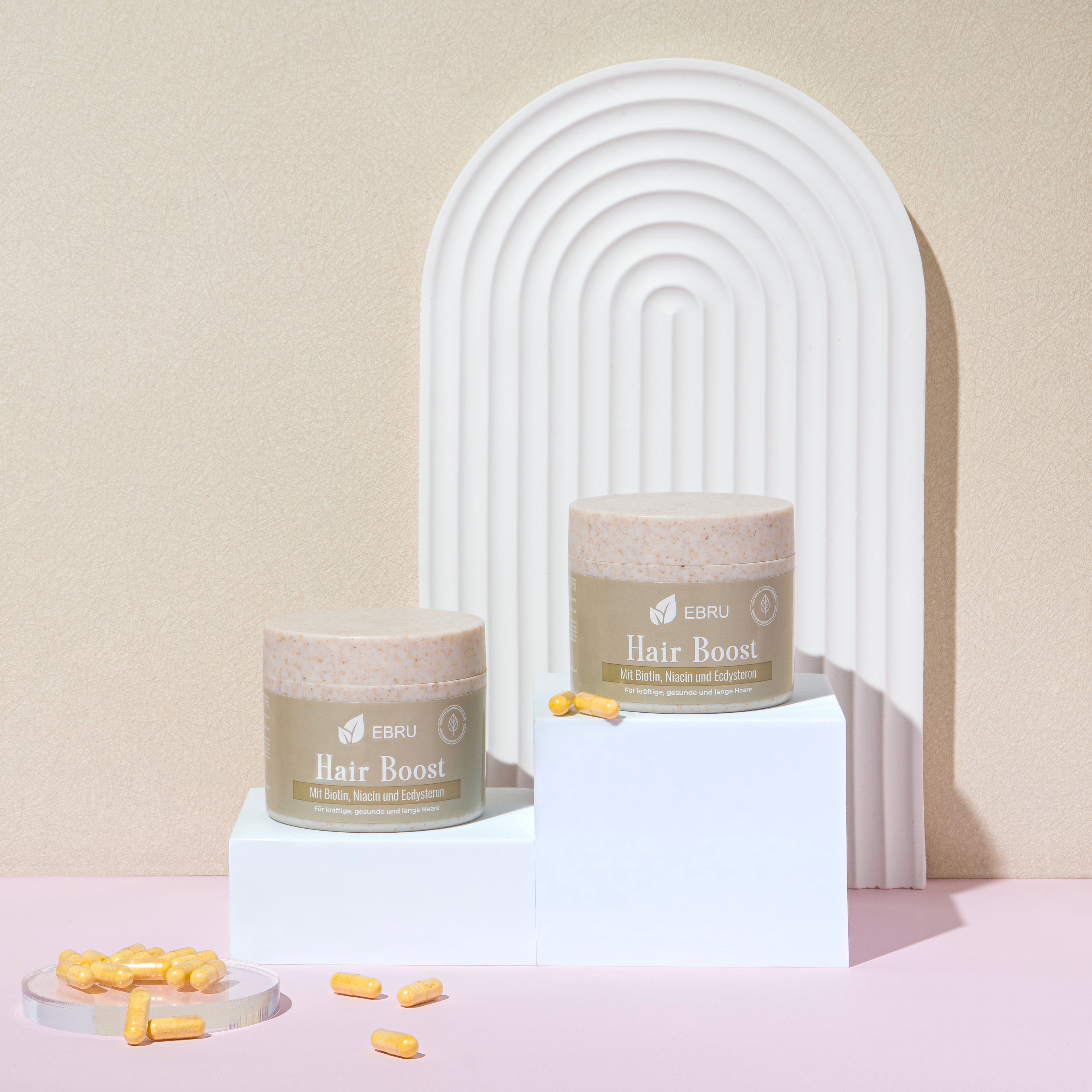 - Haarwachstum und -stärkung: Die Hair Boost Kapseln sind mit einer einzigartigen Mischung aus Nährstoffen, Vitaminen und Mineralstoffen angereichert, die das Haarwachstum fördern und die Haarstruktur stärken.